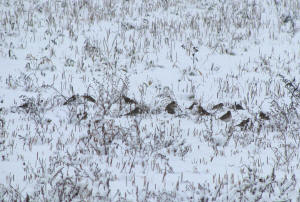 this AM, the first flock I heard but could not see in the snow. The next